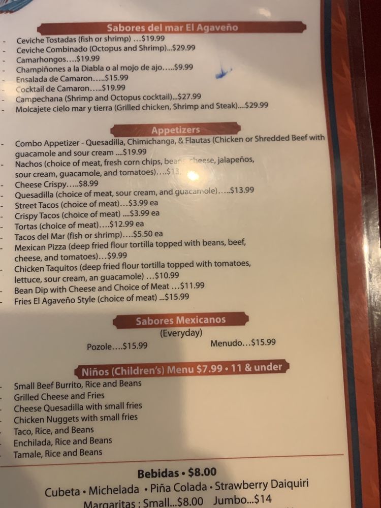El Agaveno Mexican Bistro Menu (Update 2025)